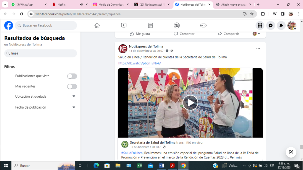 En esta publicación compartimos uno de los programas de Salud en Línea, programa institucional de la Secretaría de Salud del Tolima en sus redes sociales.