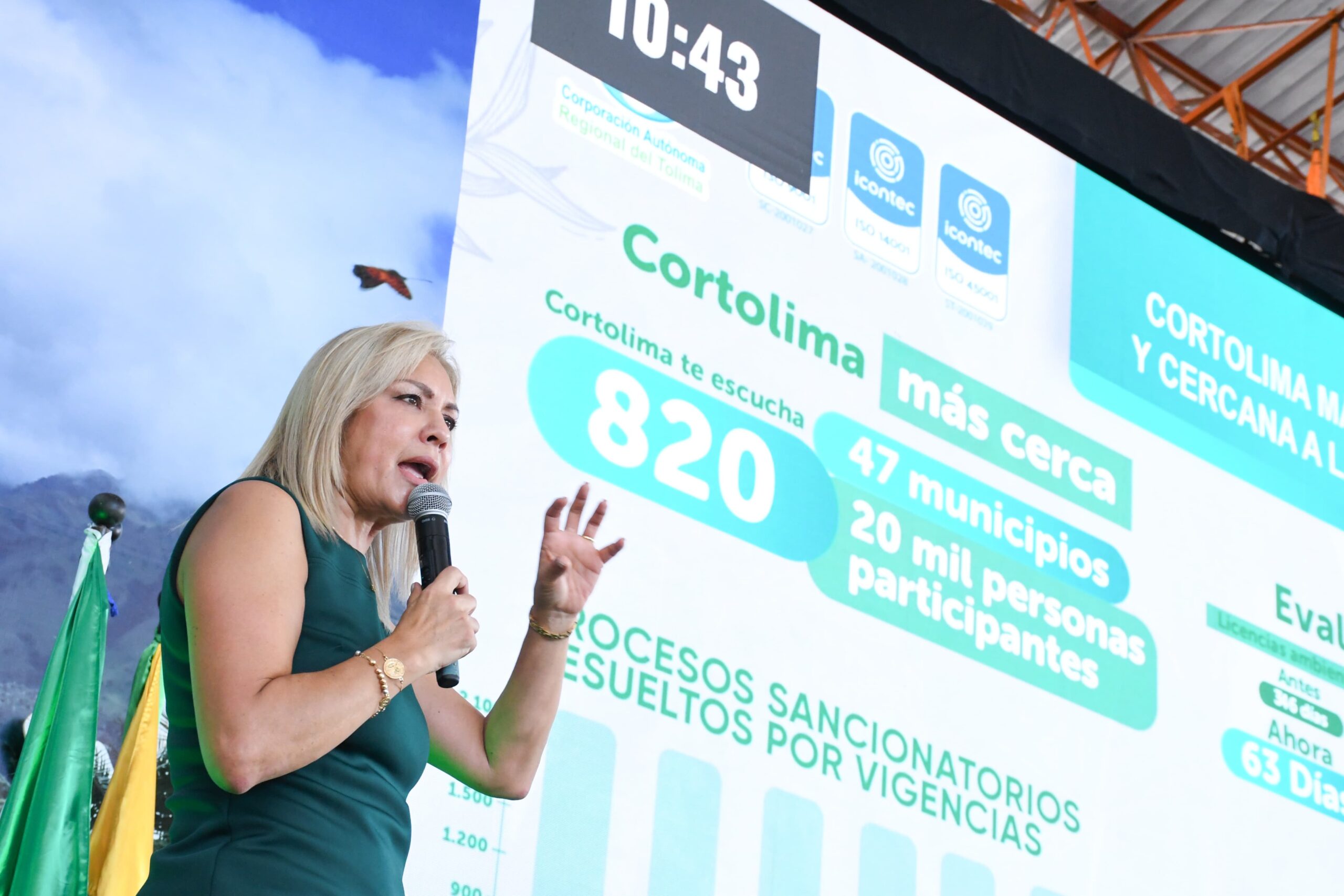 En su intervención, frente a más de 2.000 personas que acudieron a la rendición de cuentas, Alfonso Iannini recordó que Cortolima está ubicada como una de las cinco mejores corporaciones de Colombia, según el Índice de Evaluación del Desempeño Institucional. Pero, remarcó la funcionaria, desde ya se propuso mejorar su calificación.